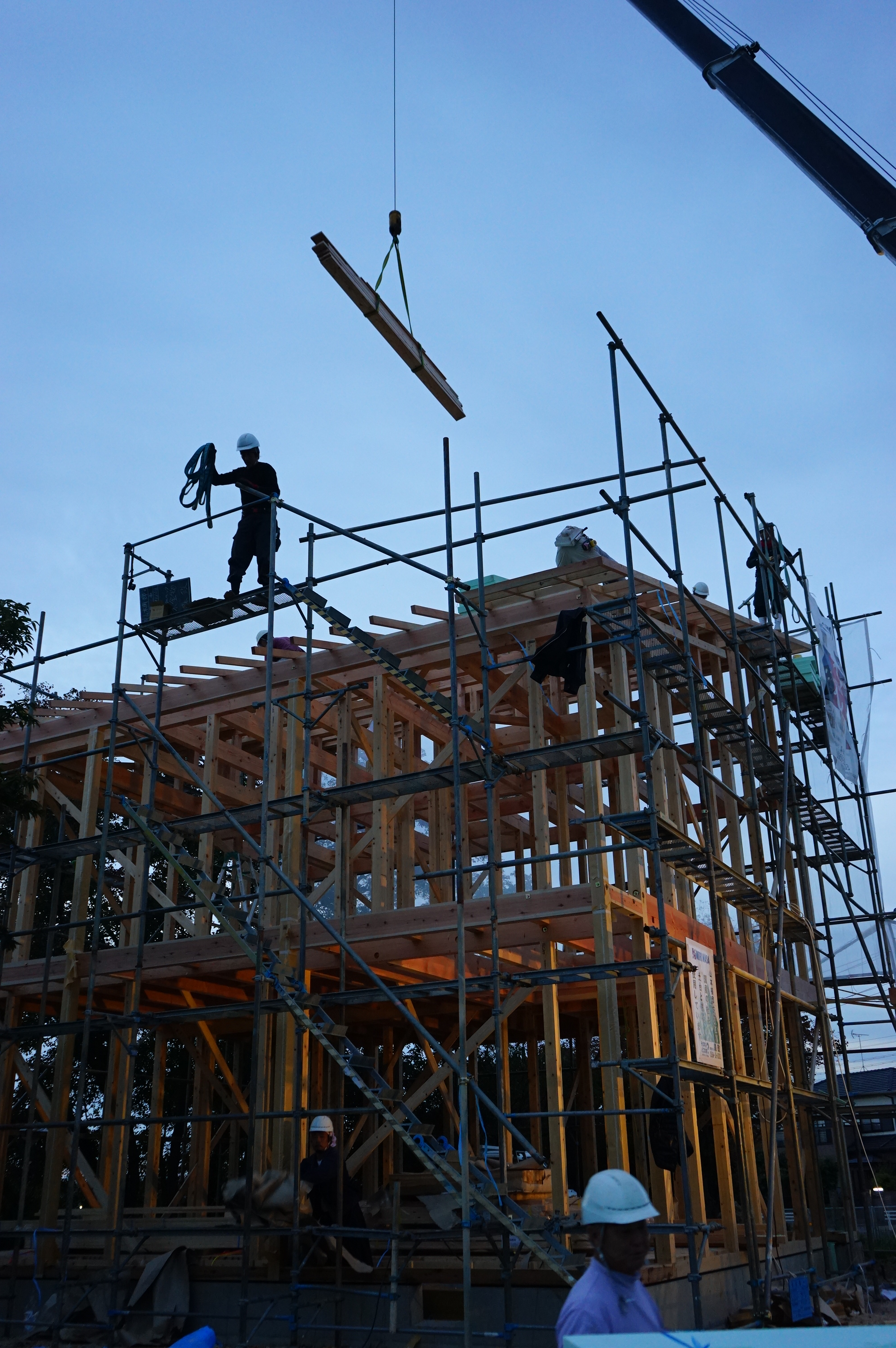 消費税の駆け込み最後の施主様です… 最後、どうせ着工できないのならという事で地域ブランド事業の補助金まで待っての… 待望の棟上げでした…