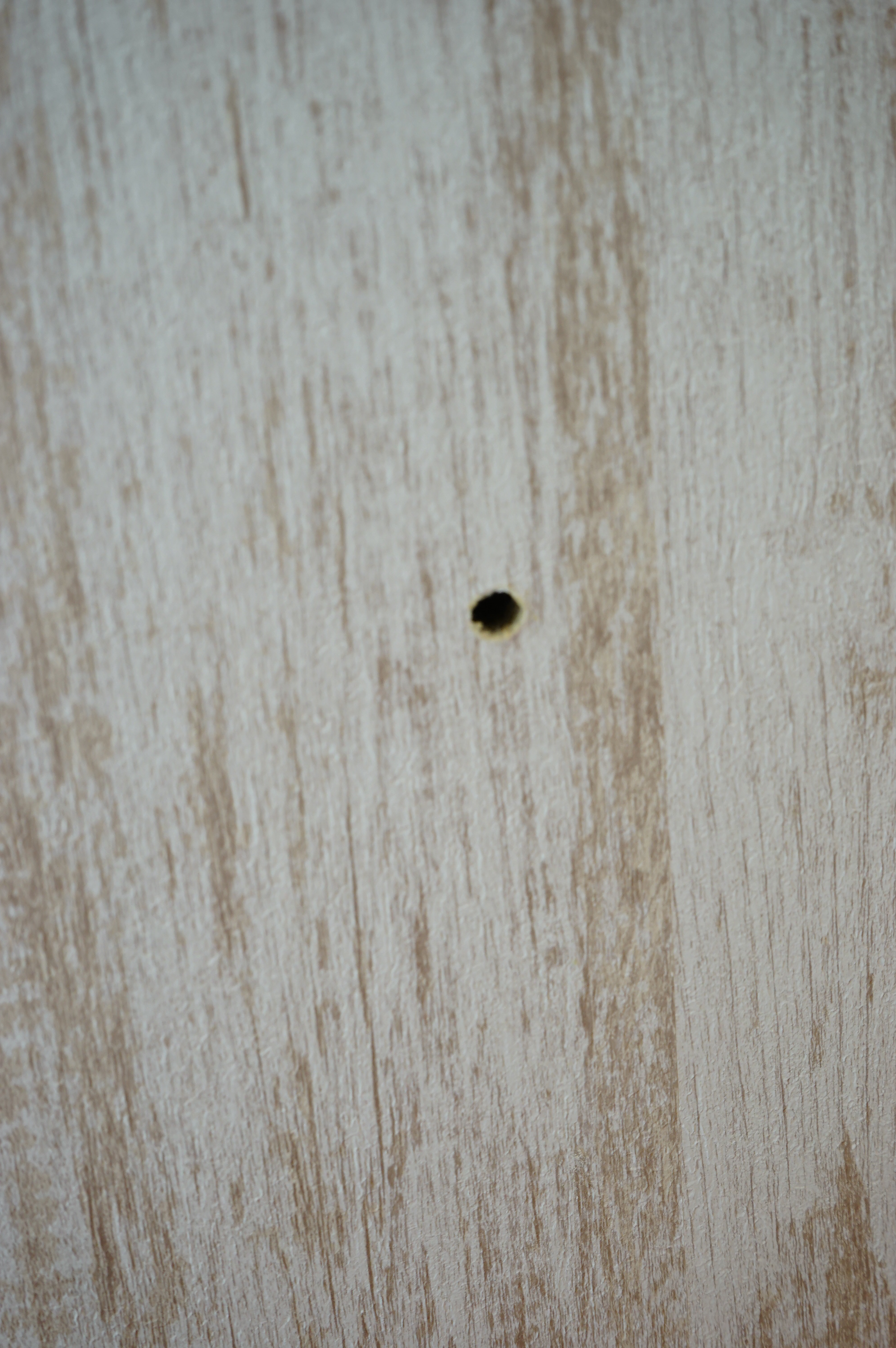 とりあえず、現地に行くと6㎜と7mmの穴が空いているではありませんか… キクイムシにしてはでかすぎるし(ラワン材も使用してないけど)… 鉄砲虫(カミキリムシ)なんか下地材料にいるはずないし… 何だこれは?(正直この仕事していて初めて見ました)