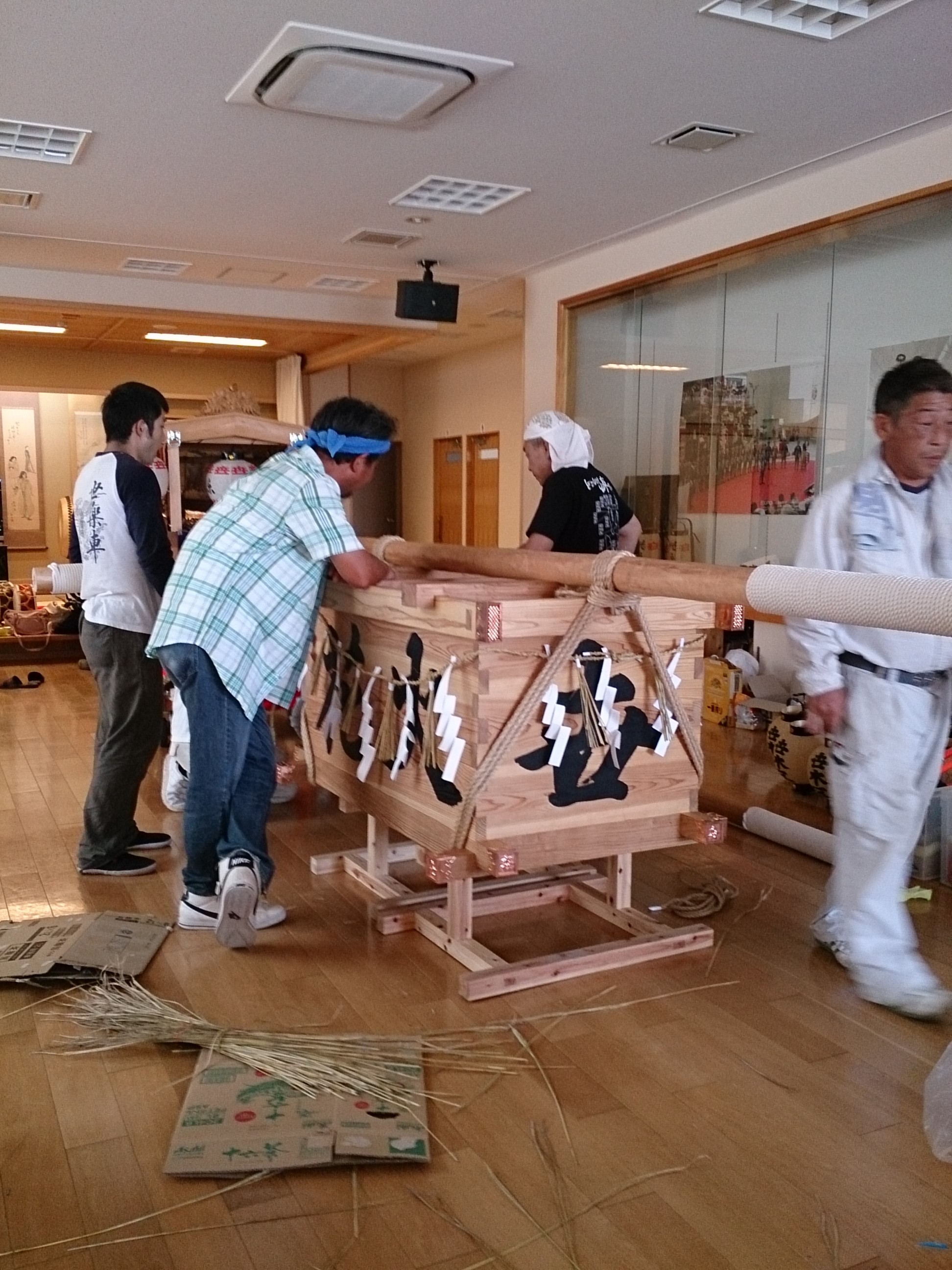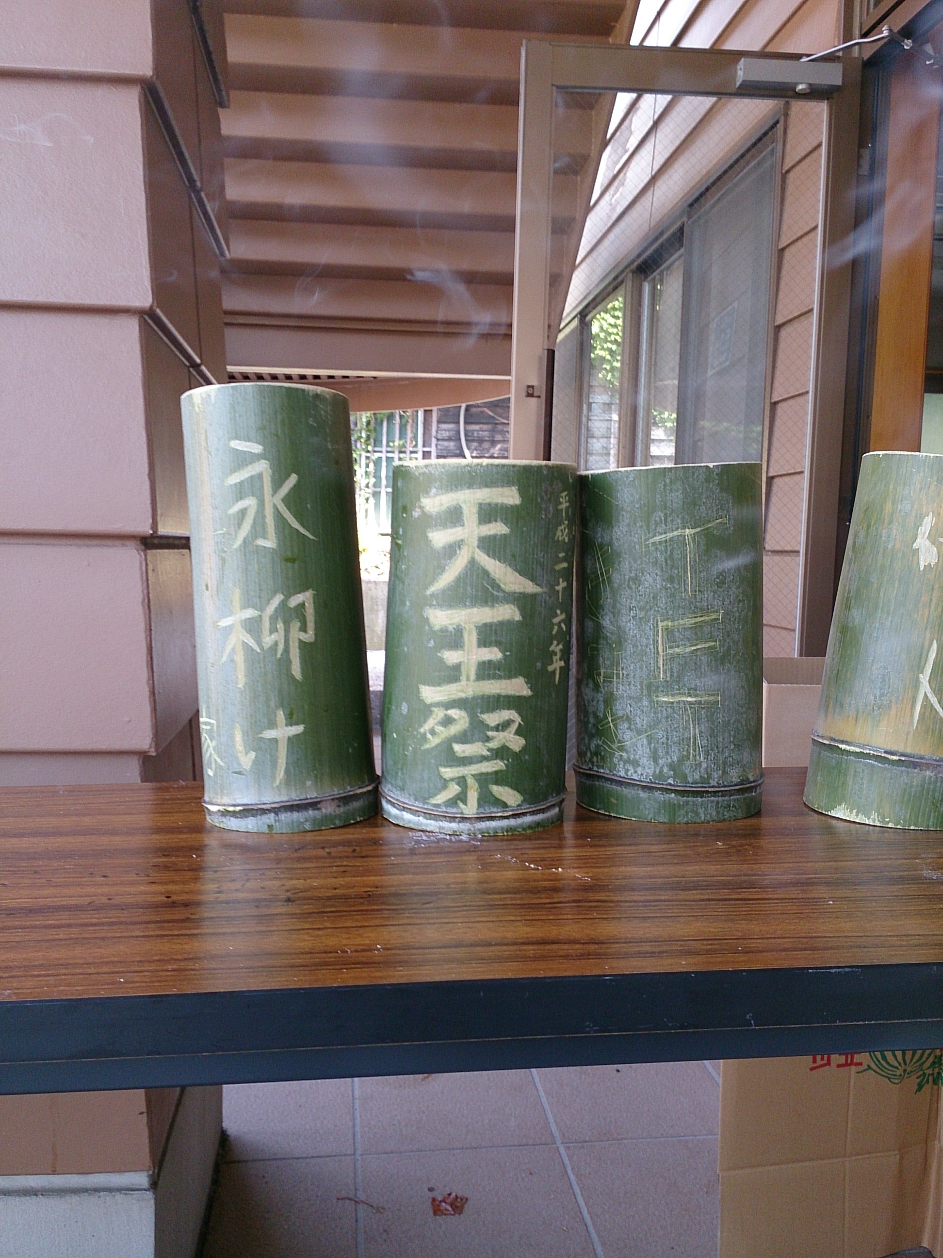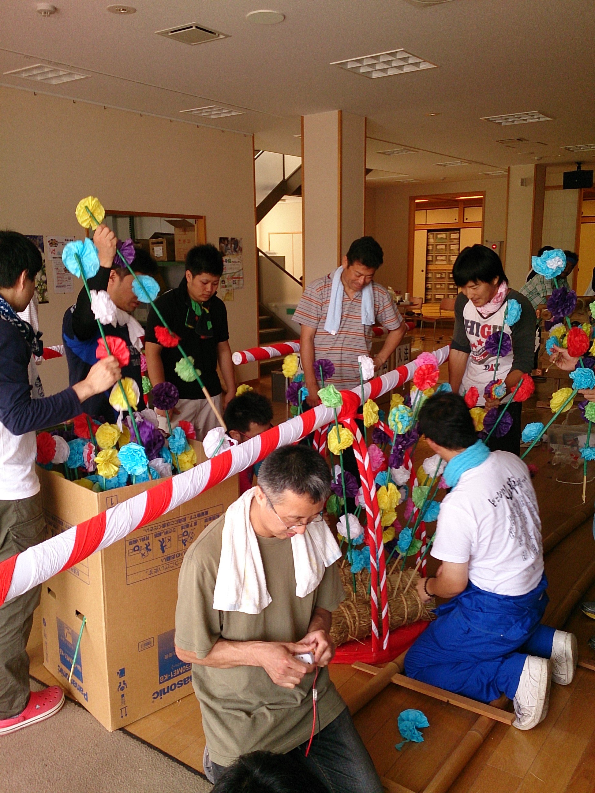 昼からは、切ってきた竹を利用して若い衆たちが流しを素麺をしたりして盛り上がって夕方の出発までの時間を過ごします、町内町さん達は、一旦帰宅してもらい夕方に再度集合してもらいます…