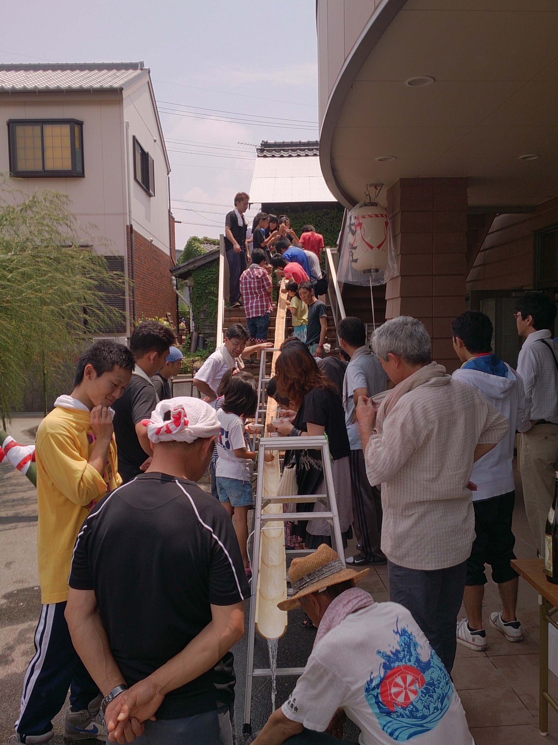 自分たちは、祭事委員のため、午後からは当番制で提灯の販売を行いました(とても暑いです)、この提灯に名前を書いて厄除けとなるのです…(最終解体の時には、厄除けとして一般のギャラリーさんへ配られます)