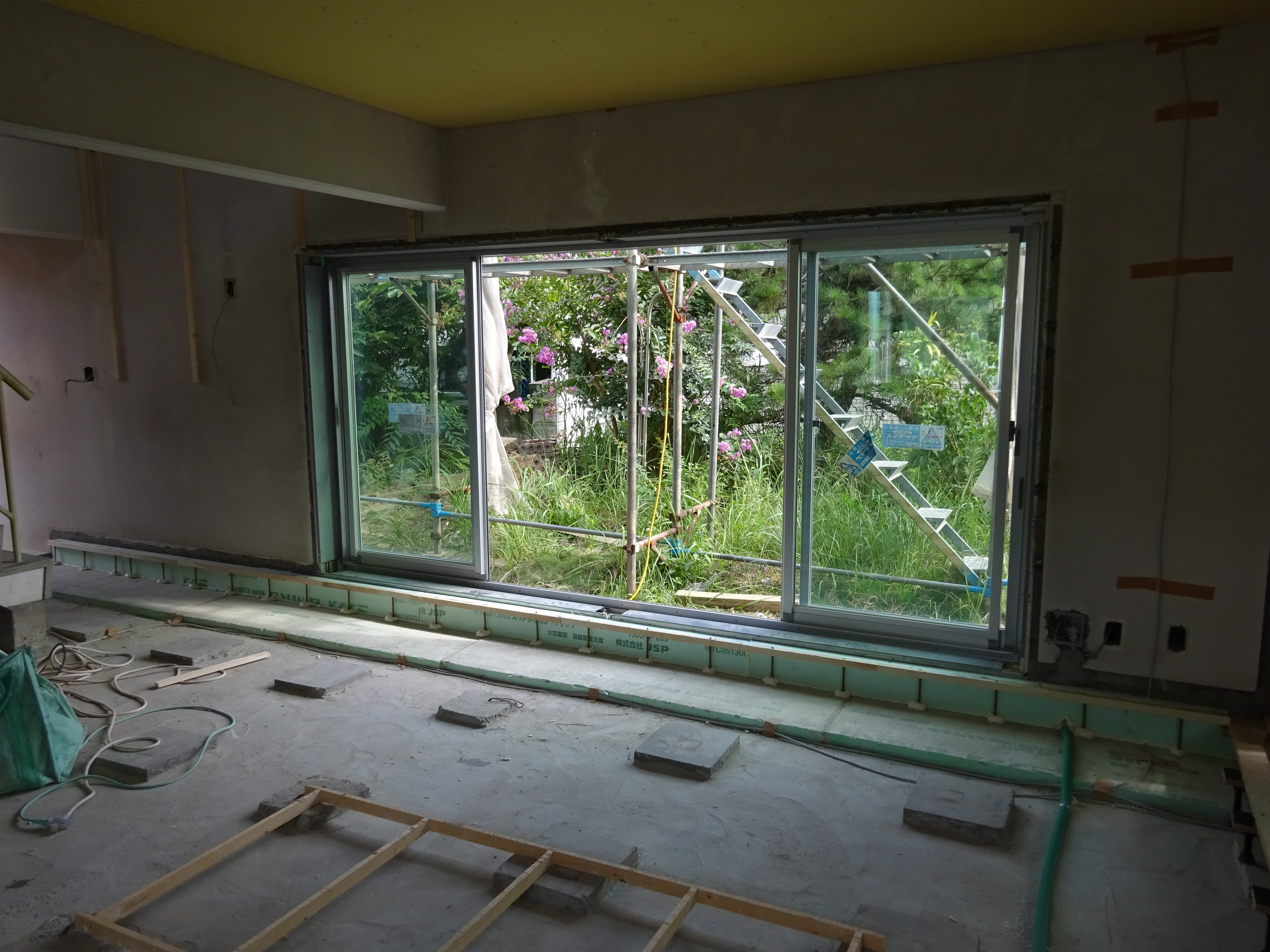 現在全面改修のRC造の家に着々と断熱が装備されています… 陸屋根・外壁には外張り断熱… 基礎内断熱と床の併用と…(素晴らしい) サッシも当然LOW-Eペアガラスに取替です… 住みここちの激変が期待できますね… ここまでちゃんと断熱リフォームが出来ると家も快適で光熱費に優しい家になりますね。