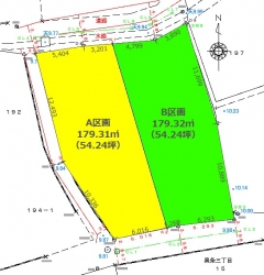 常滑市奥条1丁目195番,196番の一部A区画 54.24坪 690万円