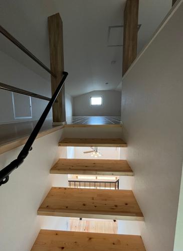 リビングは開放感のある吹き抜けを採用。開放的な空間だけでなく自然光を取り入れた心地よい空間をつくることができます。