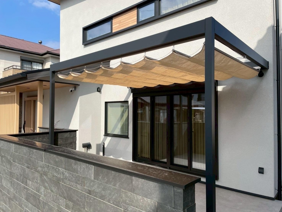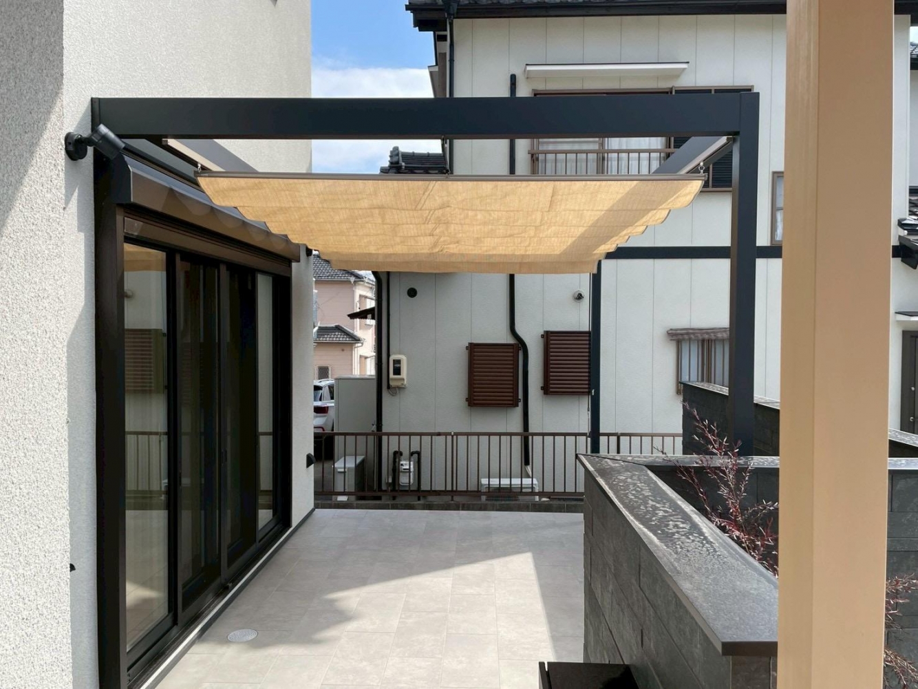 エクステリア施工例:常滑市古社 「LDKの前にあるモダンなタイルデッキ」