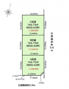 常滑市井戸田町3丁目254、255番地 A区画 72.41坪 1310万円