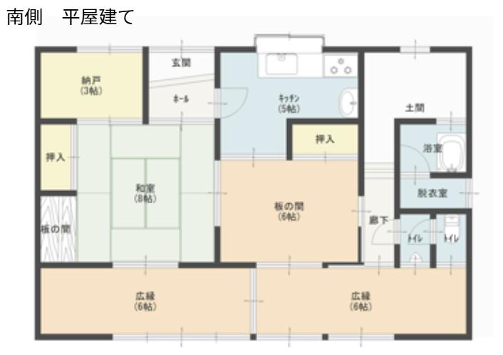 南側離れ:木造一階建て、間取り2K、建設年1971年、延べ床面積79.49㎡