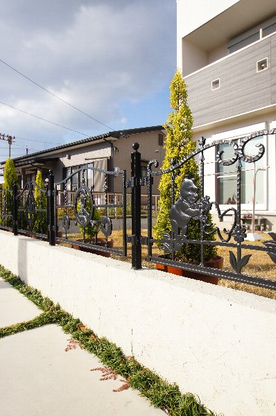 エクステリア施工例:ディズニー門扉とフェンスがかわいい…